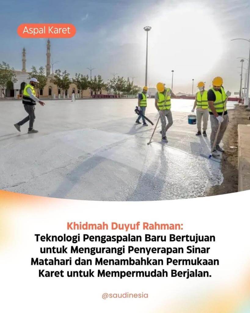 • Membangun jalan aspal karet dingin yang memungkinkan jemaah haji berjalan tanpa alas kaki di Masya’ir Muqaddasah.
