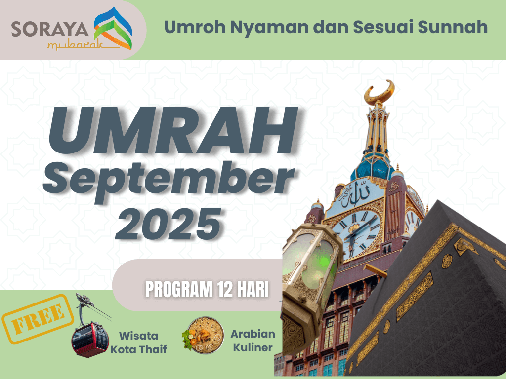 - Perlengkapan : Koper kabin, koper bagasi, tas paspor, kain ihram/mukena, sandal, buku manasik, kain seragam, syal, & sabuk